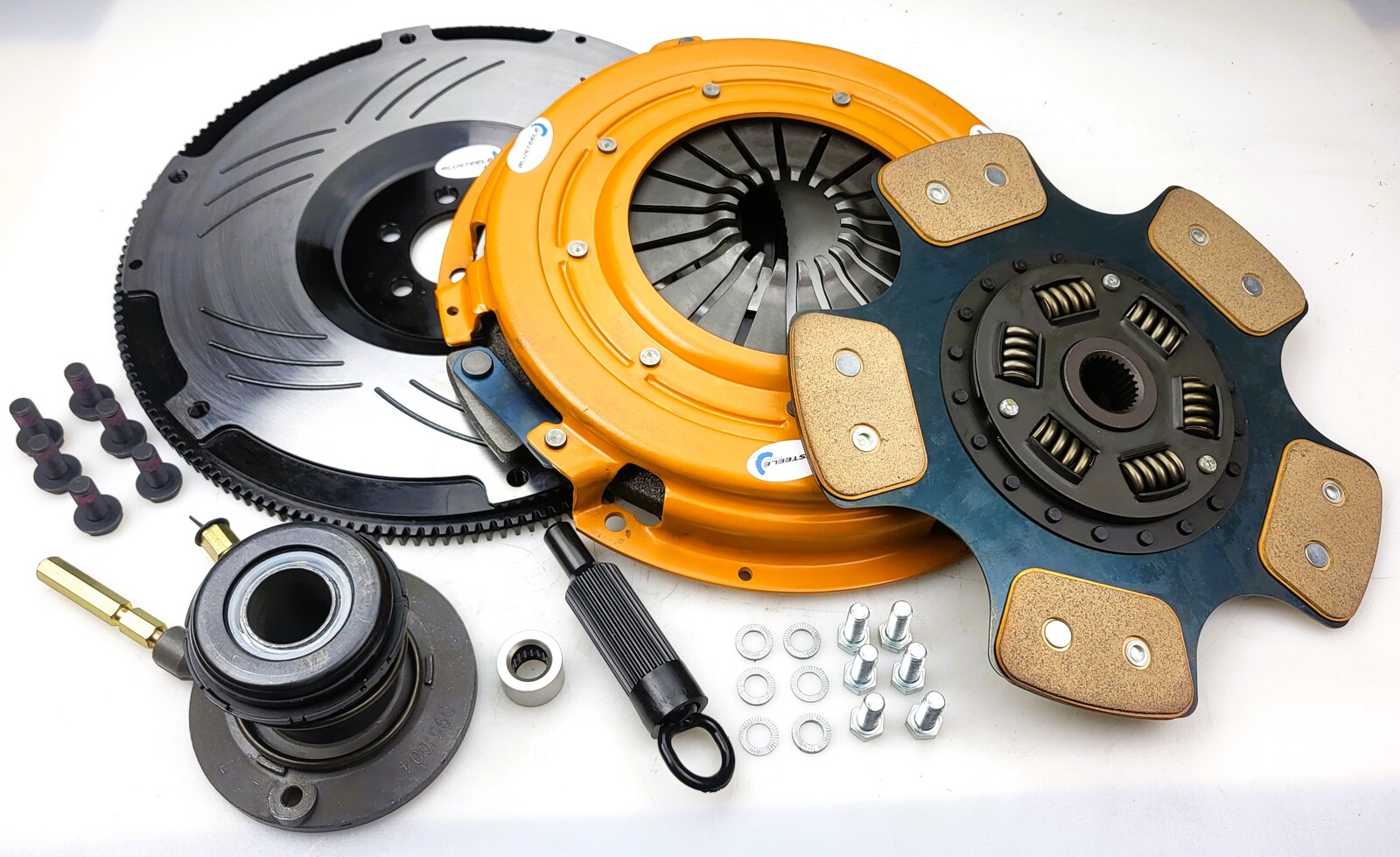 BLUSTEELE POWER TORQUER STAGE 4 CLUTCH KITS FEATURE A CERAMIC CLUTCH PLATE WITH DAMPENING FOR GREATLY IMPROVED TORQUE CAPACITY; DESIGNED FOR A MIX OF STREET AND MOTORSPORT USE. THEREFORE DRIVEABILITY IS COMPROMISED TO ENABLE ON TRACK PERFORMANCE.
